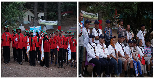 تحت شعار: ” الوحدة الكشفية في خدمة المجتمع ” احتضن مخيم راس الماء بإقليم إفران خلال المرحلة الرابعة لصيف 2025 حفلا كشفيا مميزا في إطار فعاليات المخيم الكشفي المتنقل والذي جمع كافة التنظيمات المنضوية تحت لواء الرابطة الوطنية للكشفية المغربية، حيث تم تقديم لوحة جامعة عرفت حضور كافة المشاركين بزي كشفي ومنديل موحد، وعكست قيم المواطنة و التآزر والتضامن والأخوة الكشفية، وقد ازداد التجمع الشرفي للرابطة الوطنية للكشفية المغربية براس الماء بالحضور الرسمي المميز لكل من حكيم موافق رئيس قسم المخيمات بوزارة الشباب والثقافة والتواصل – قطاع الشباب، محمد كليوين رئيس الجامعة الوطنية للتخييم، محمد موافق رئيس مصلحة المخيمات، إسماعيل الحمراوي المندوب الجهوي لوزارة الشباب والثقافة والتواصل – جهة فاس مكناس، صلاح الدين مبروم القائد العام للرابطة الوطنية للكشفية المغربية .