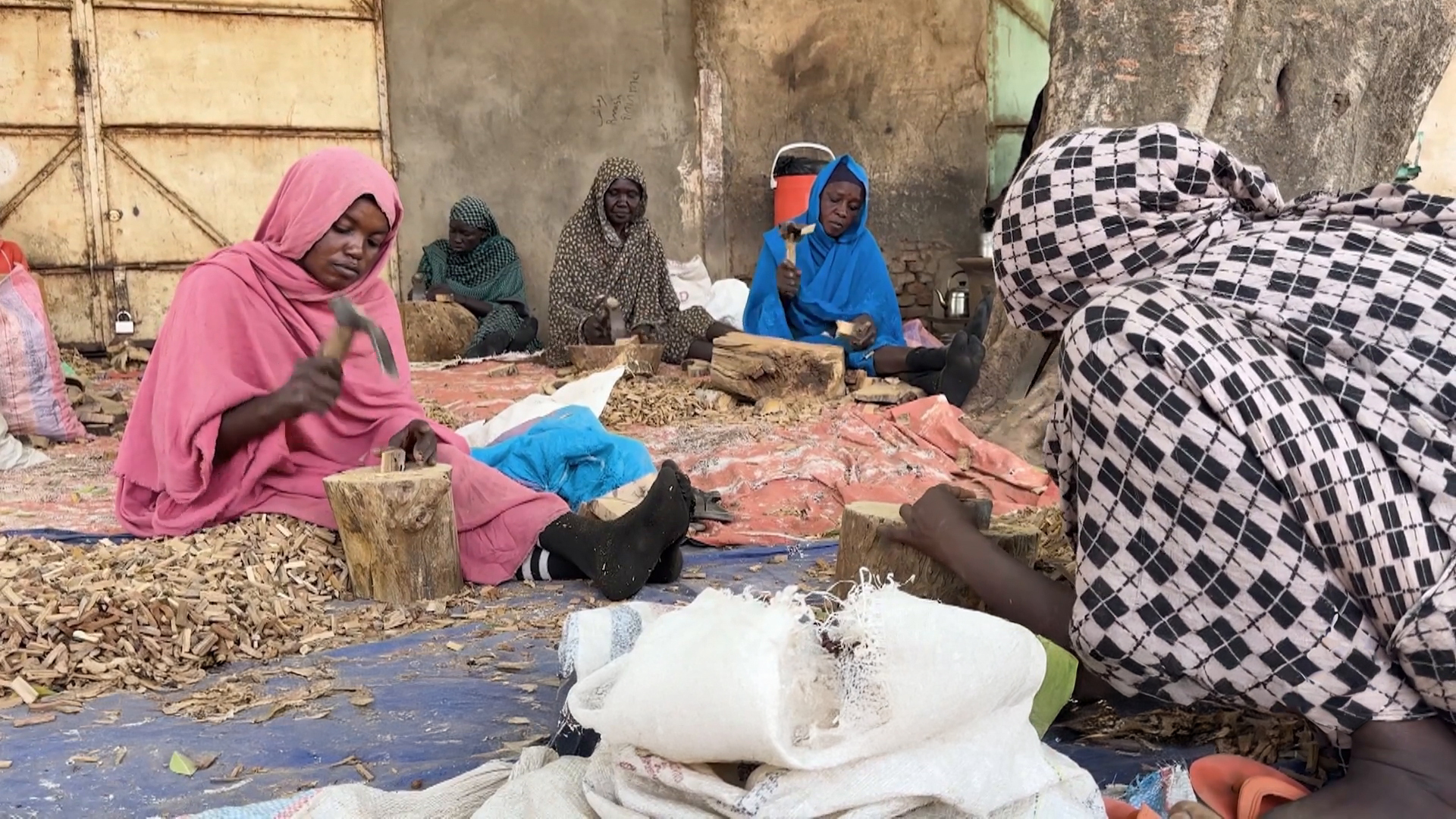 مراسل الجزيرة الطاهر المرضي رصد معاناة رشا اليومية في قطع الأخشاب وتحويلها إلى قطع صغيرة لبيعها، وهي مهنة شاقة تتطلب جهدا بدنيا كبيرا مقابل عائد ضئيل للغاية.